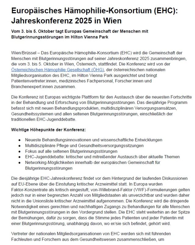 Konsensus des Wissenschaftlichen Beirates zur Therapie der Hämophilie